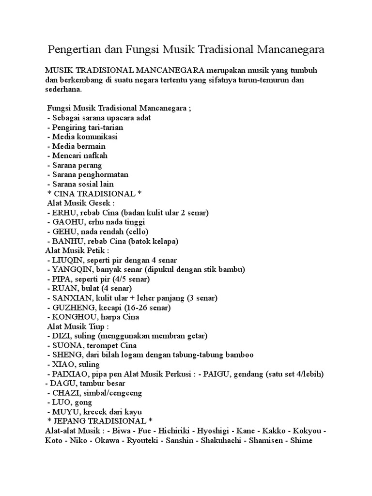 Pengertian Dan Fungsi Musik Tradisional Mancanegara1 Doc